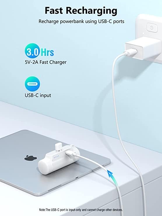 Abnoys Portable-Charger-Power-Bank – 8000mAh Mini Power Bank Ultra Compact Portable Phone Charger Battery Pack Compatible with iPhone Comes with a Type-C Conversion Interface (White)